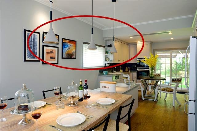 15、餐廳裝燈的時候一定要考慮餐桌的擺放位置, 不然燈具不在餐桌的正上方,看著更別扭。