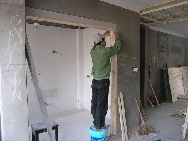 22、木工的包門套和瓦工的貼瓷磚一定要配合好,包門套的時候要考慮下面的地面是否還要瓷磚或者是水泥砂漿找平,因為門套如果在貼瓷磚或者地面找平之前訂好的話,一直包到地面,將來我們瓦工施工的時候,如果導致水泥和門套沾上的話,導致我們的門套吸水發霉的現象。
