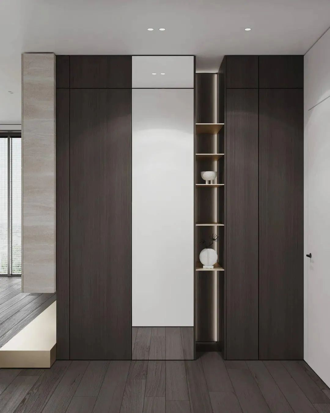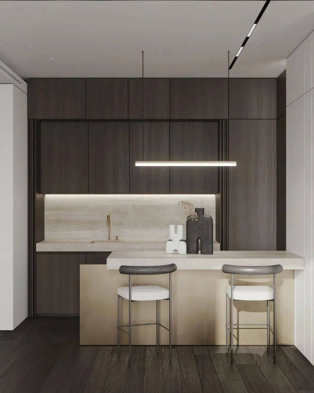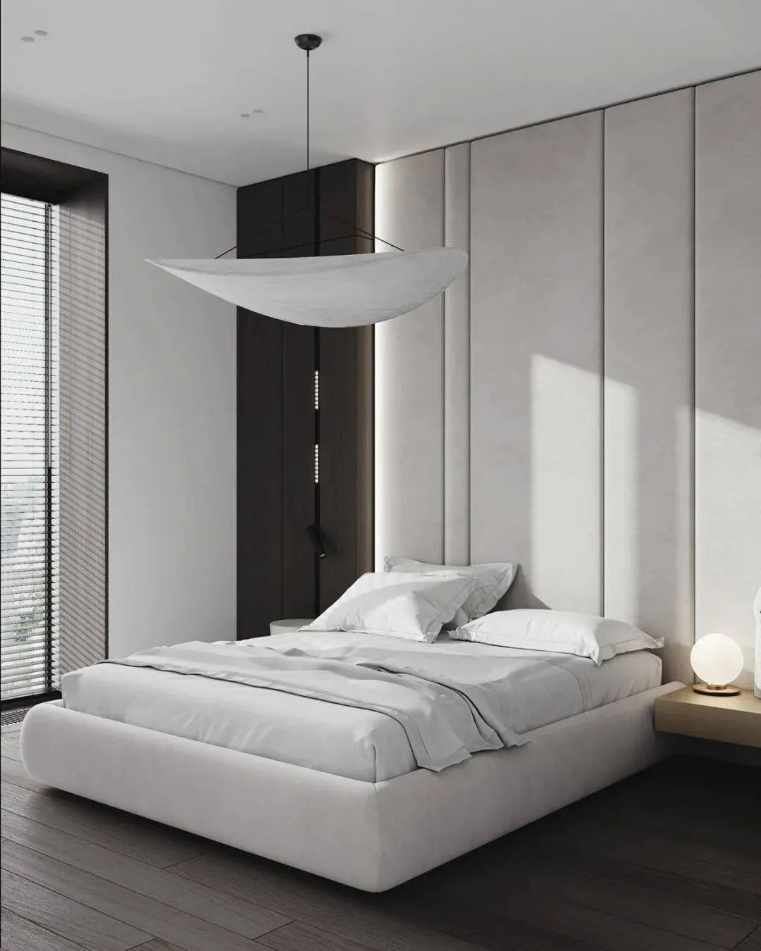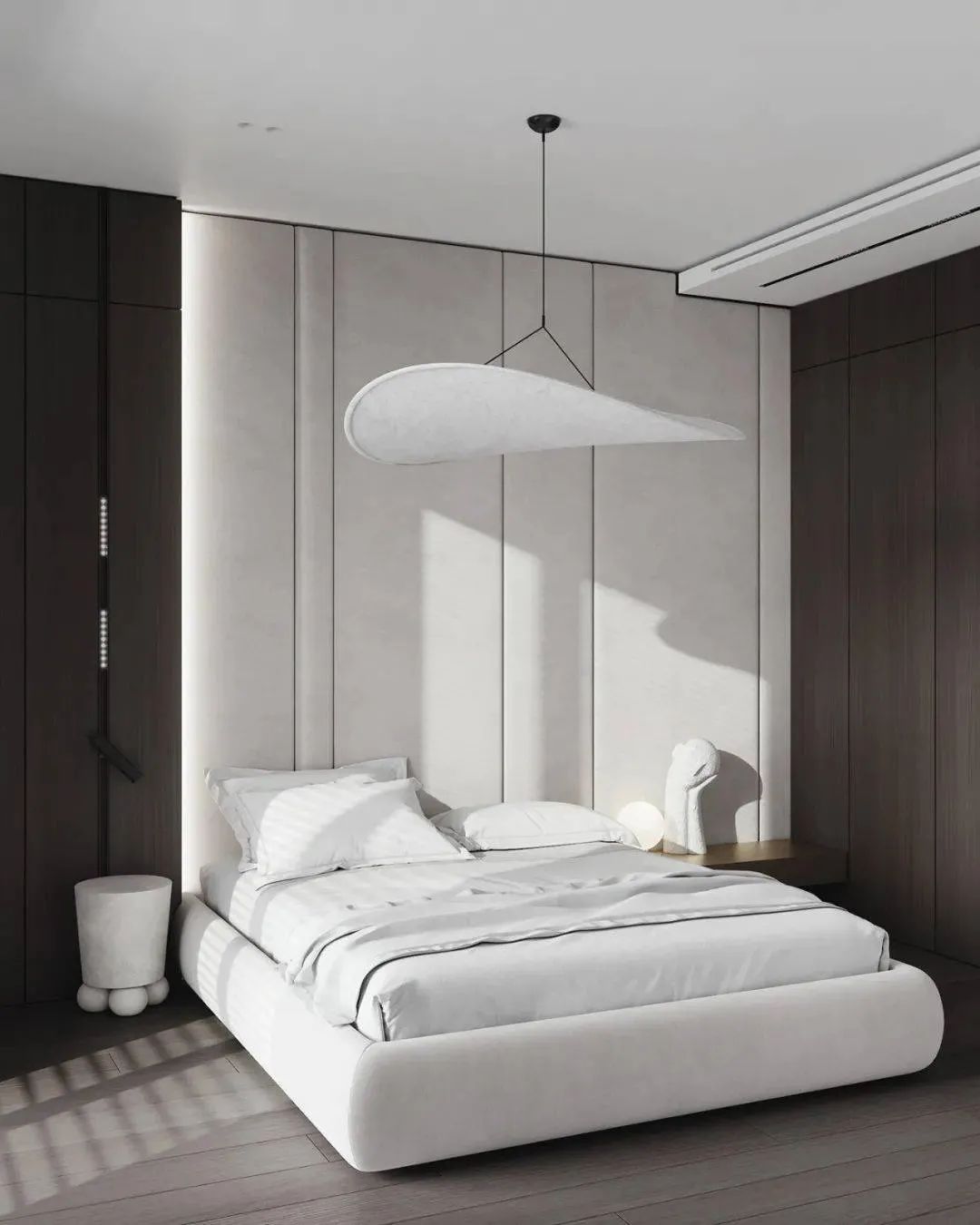 空間以白色調(diào)為主,通過用多種輕奢感十足的元素來對空間進行裝飾,家具擺放簡潔質(zhì)樸,空間整體呈現(xiàn)出的氛圍感強烈,這個狹小的空間在設(shè)計師的打造下成為了一個寧靜的私人小天地。