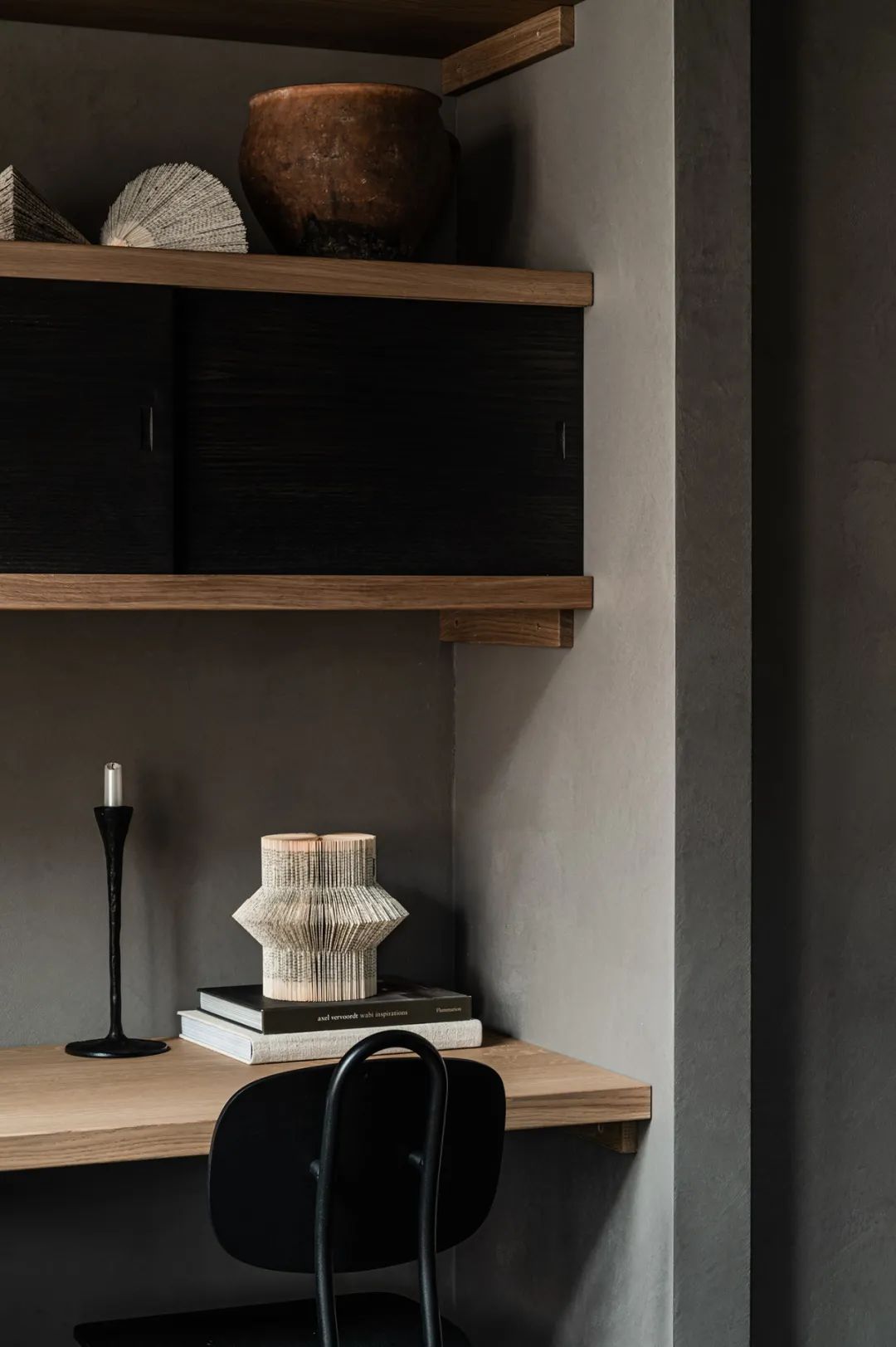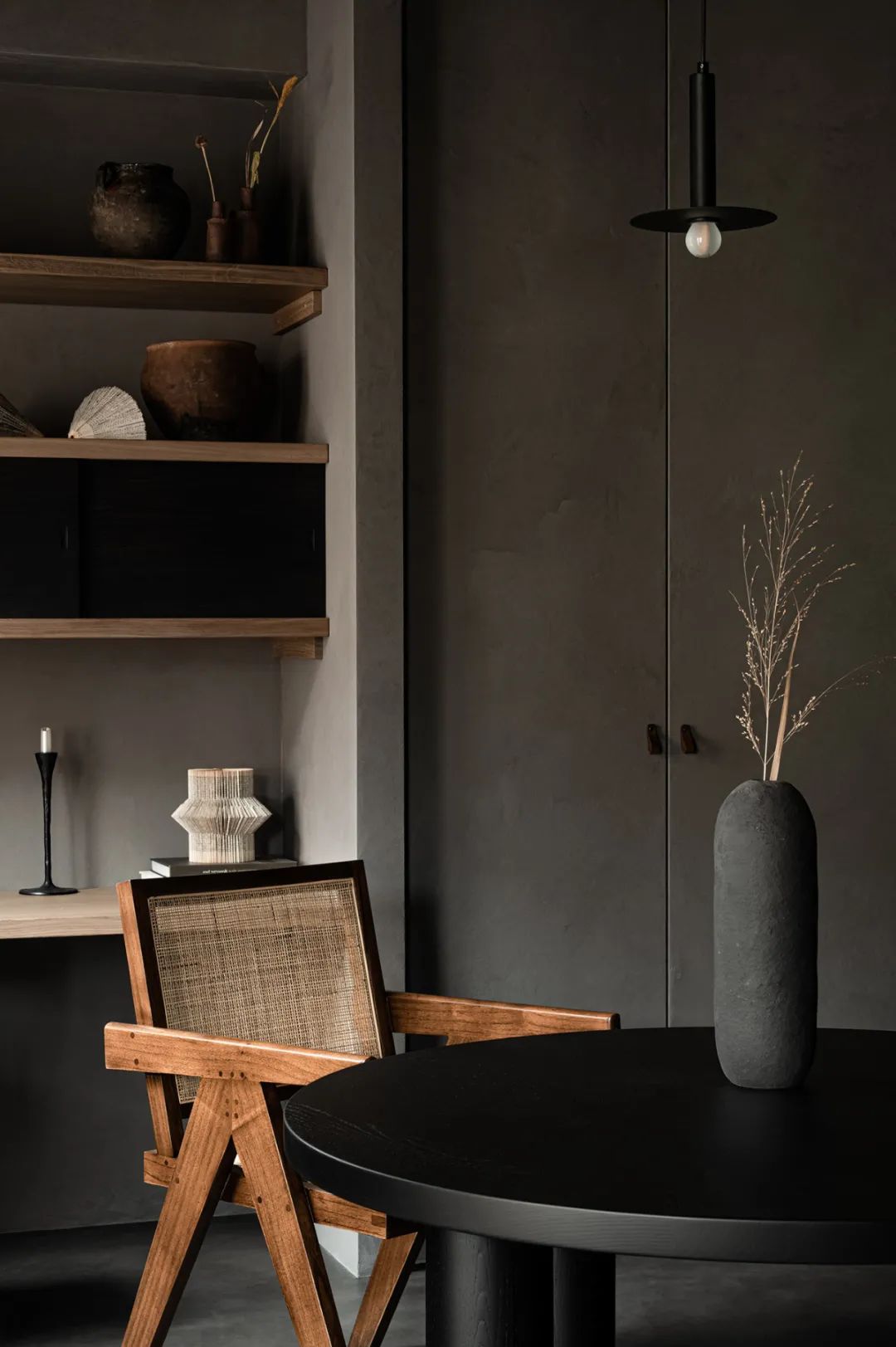 這所由這些元素構成的45平方米的暗黑風格設計小屋用于冥想的休息場所。
