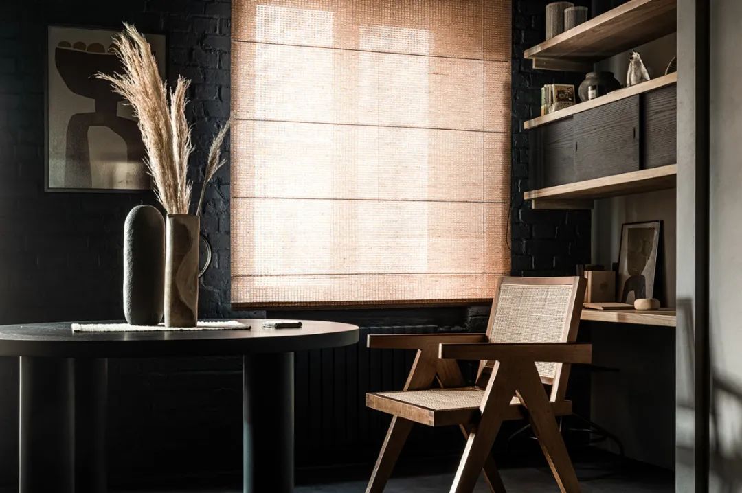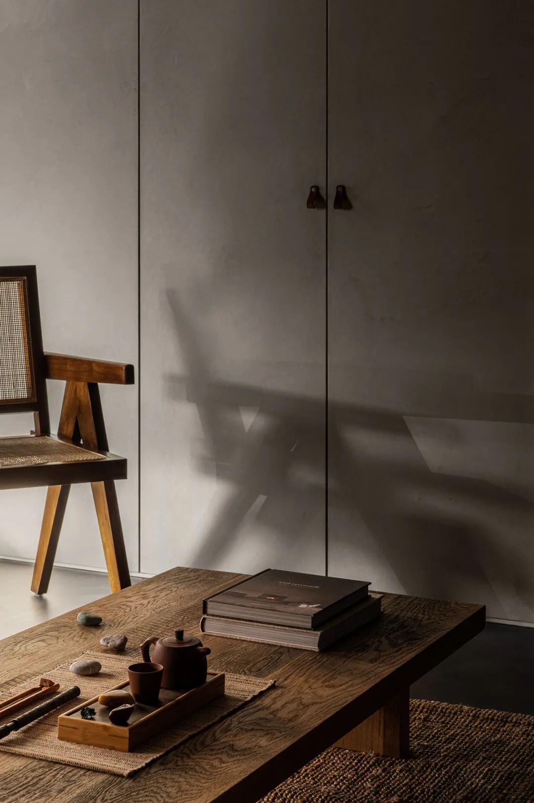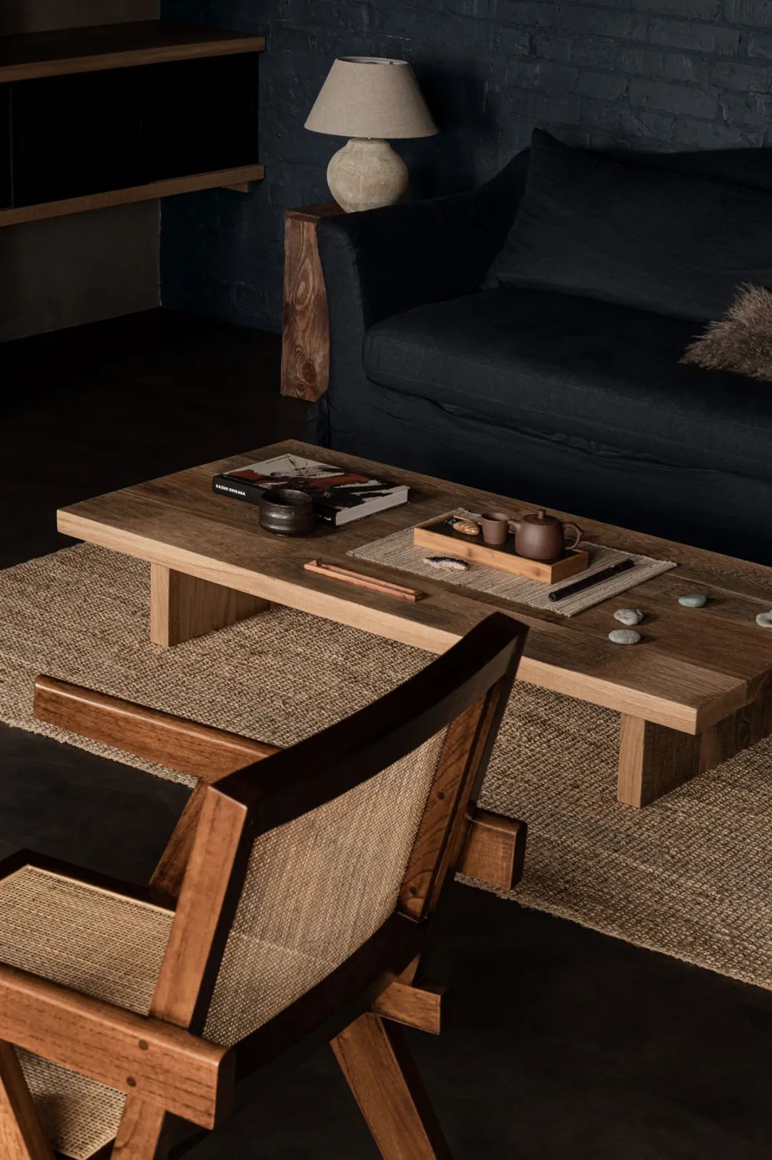 藤編的座椅和木質的茶幾給整個空間增添了一絲“禪”的味道,搭配邊上麻布質地的燈罩,讓空間增添了不少韻味。