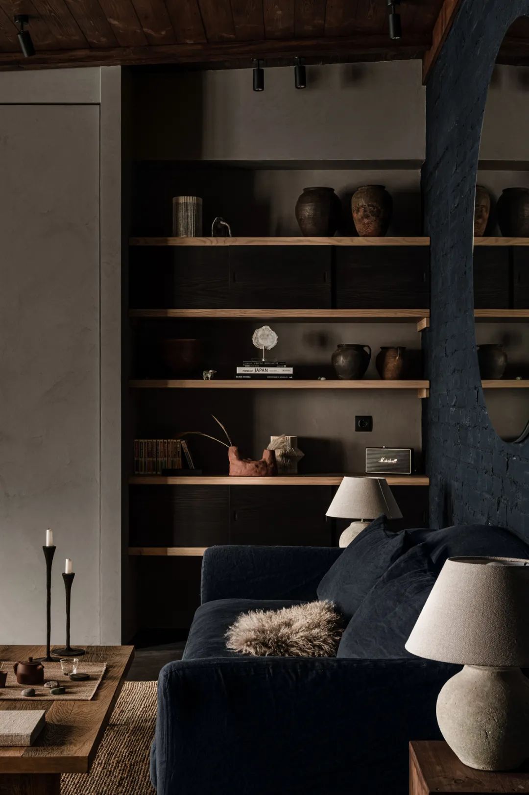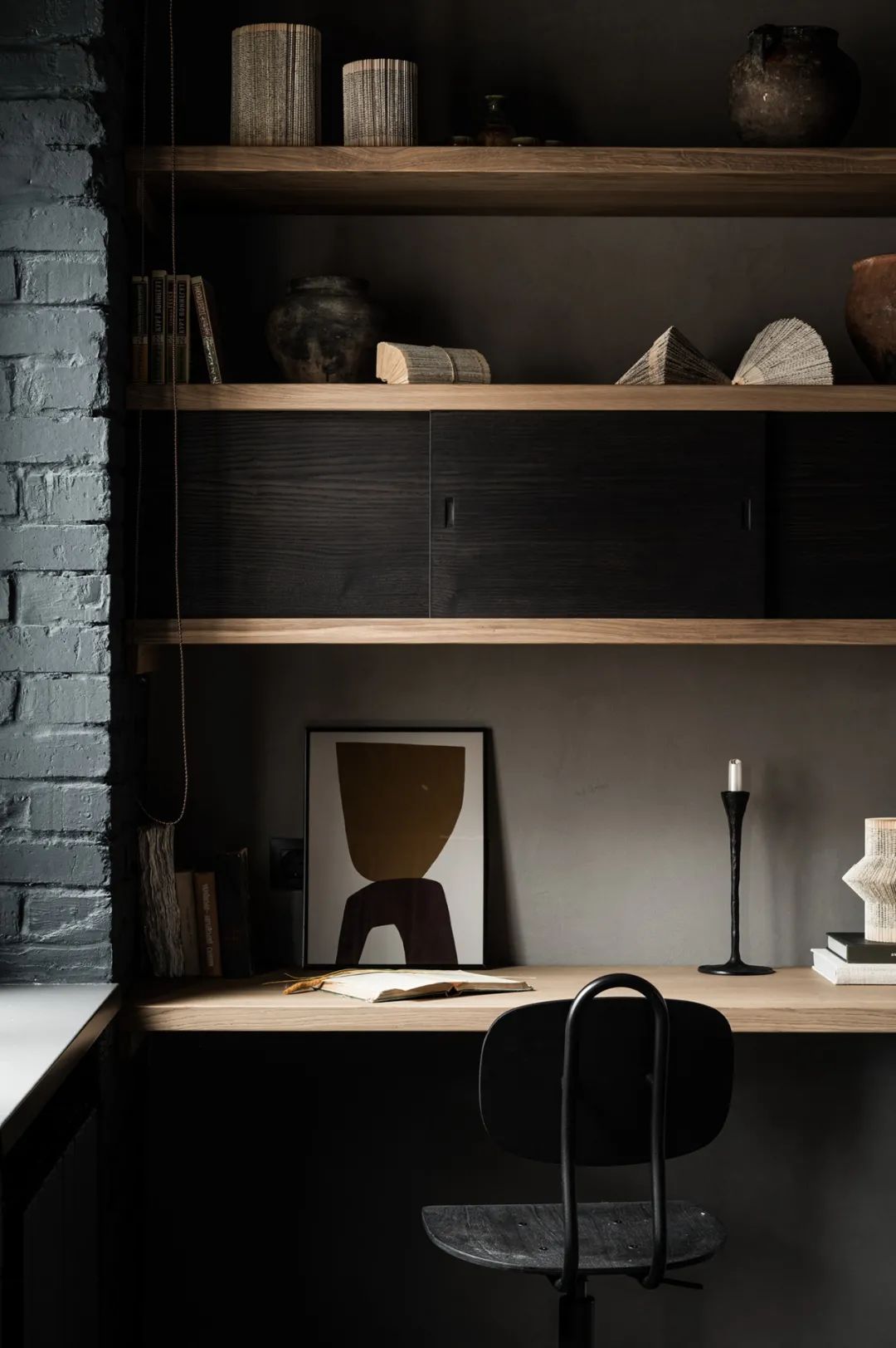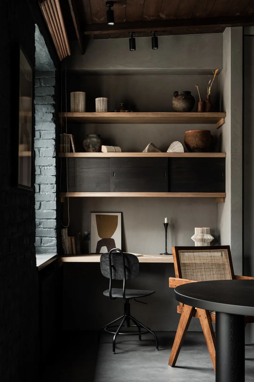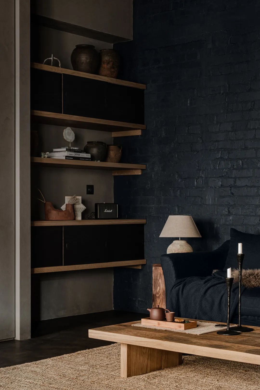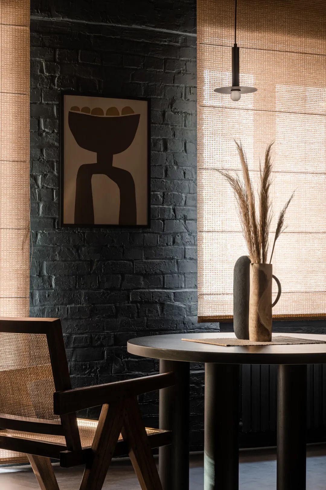 整個室內(nèi)以暗色系為主,黑色的磚墻布滿了每一處角落,雖然暗沉卻毫不壓抑,身處在這個空間可以讓人由內(nèi)而外的散發(fā)出一種安心感。