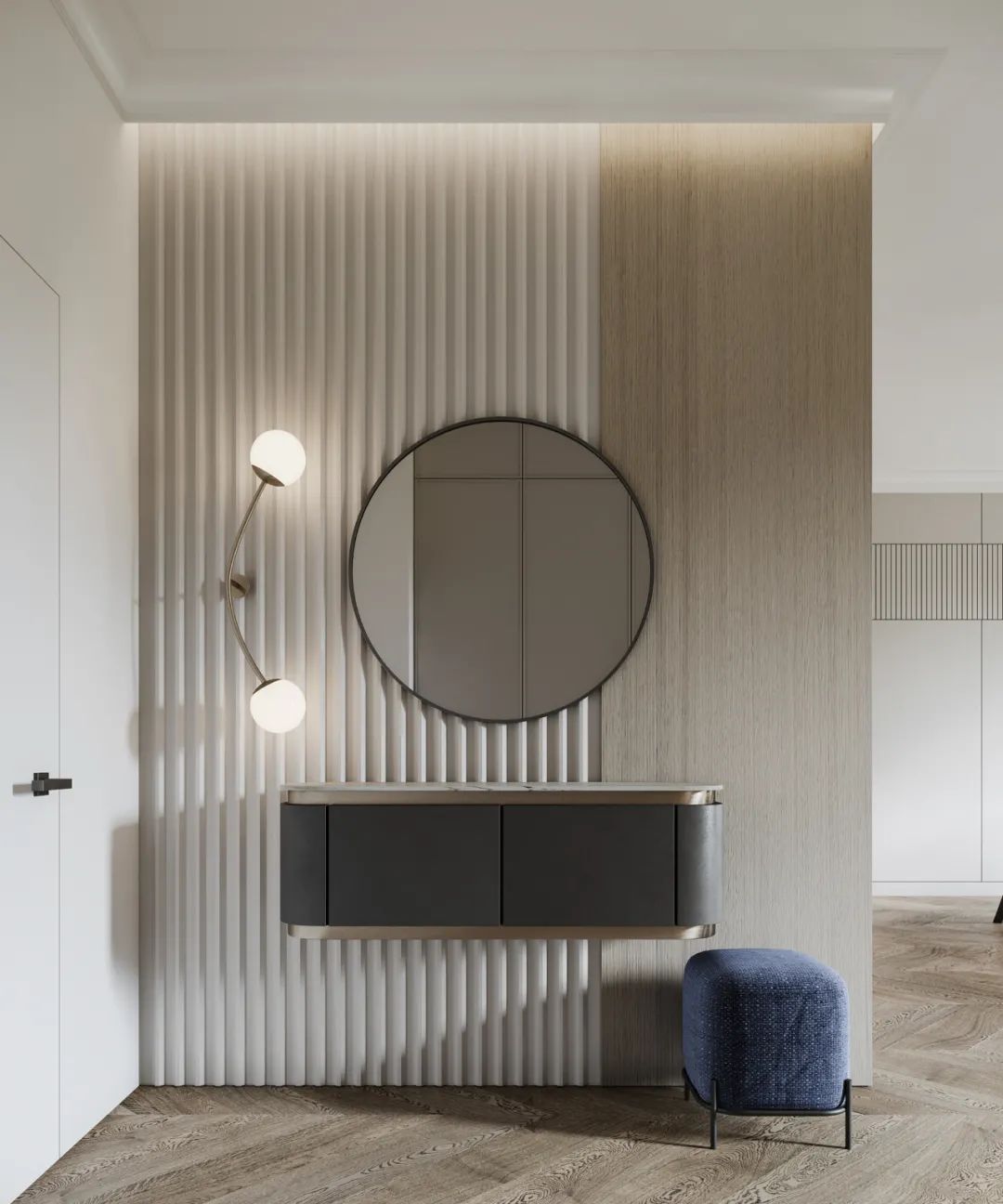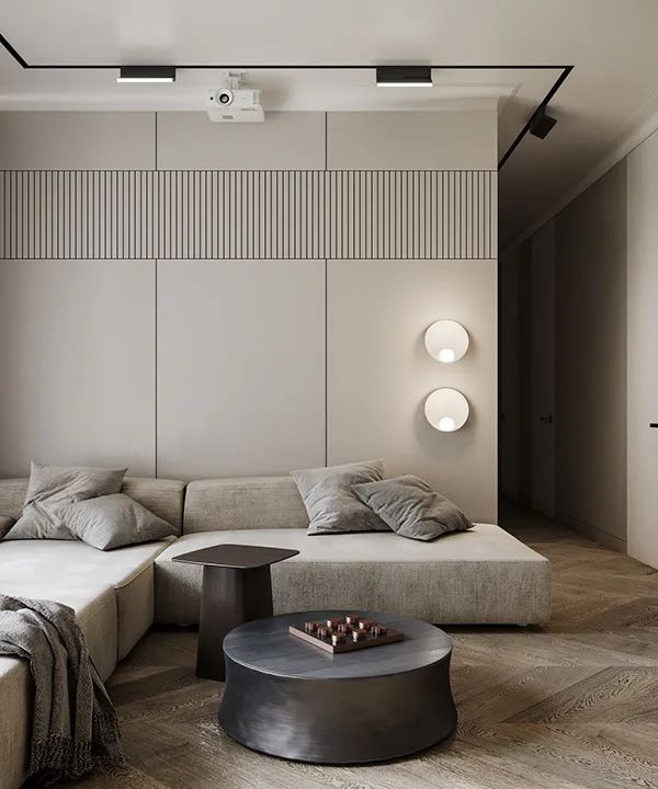 米色作為整個空間的主色調,貫穿家庭里的每個角落中。暖色系的燈光照射在實木的地板上,襯托出整個空間的寧靜與優雅。