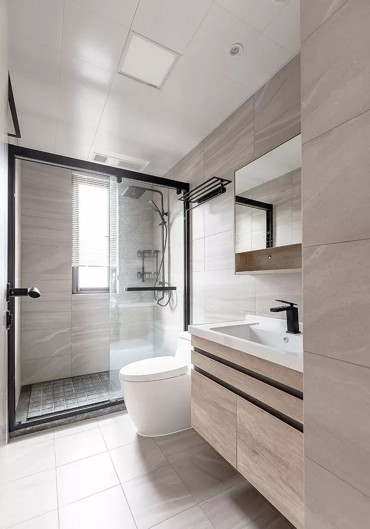 雖然空間小,干濕分離也是可以做到的,最簡單的方法就是做淋浴房。推薦選擇U型或鉆石型,尺寸不小于80cm*80cm的淋浴房。可以通過減少邊角,讓空間變得靈活,分區(qū)不會太死板。