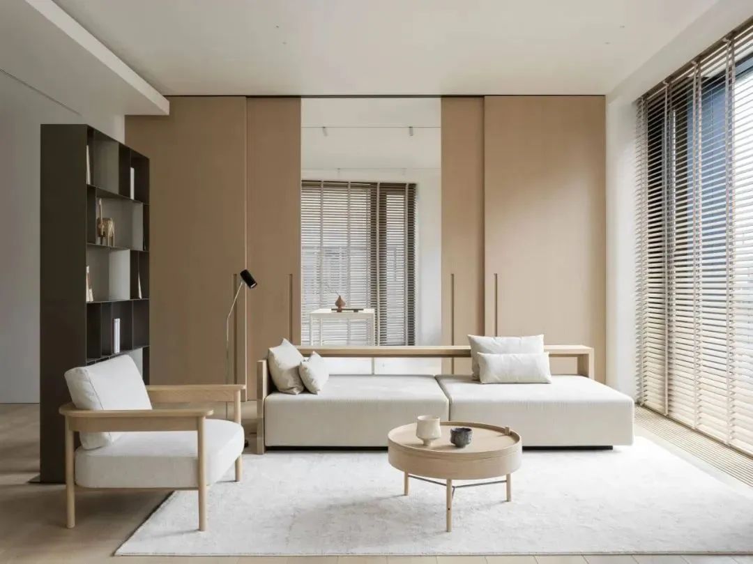 客廳中,淺灰色的布藝沙發(fā)與原木色的空間很好地融合在了一起,和諧統(tǒng)一的色調(diào)讓空間更具一體性。簡潔的原木小茶幾上擺放著裝飾擺件,豐富了空間的細節(jié),賦予空間獨特的美感。利用大面的落地窗將自然光引入客廳,給人明亮的視覺感受。