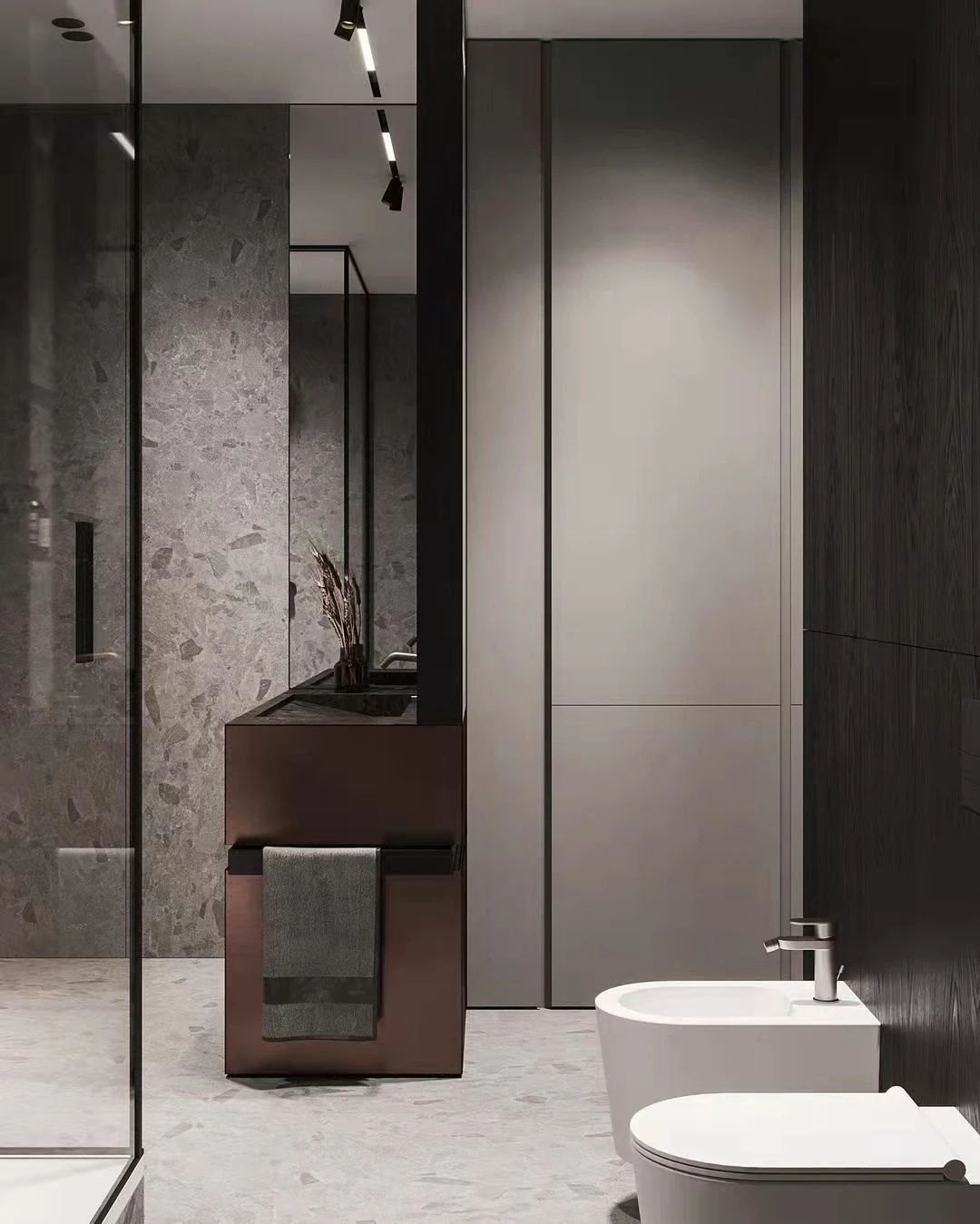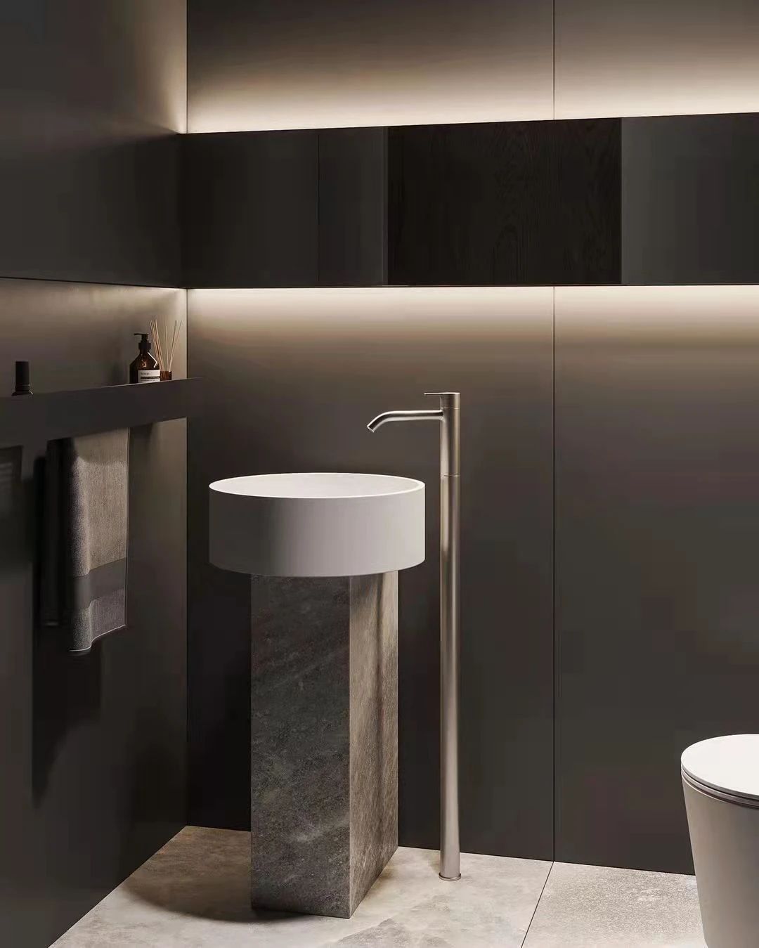 回到門前,客衛(wèi)的設(shè)計(jì)與主衛(wèi)一脈相承,略有不足的空間遵循“實(shí)用,美觀”的原則,黑白分明的色彩,大方而高貴。