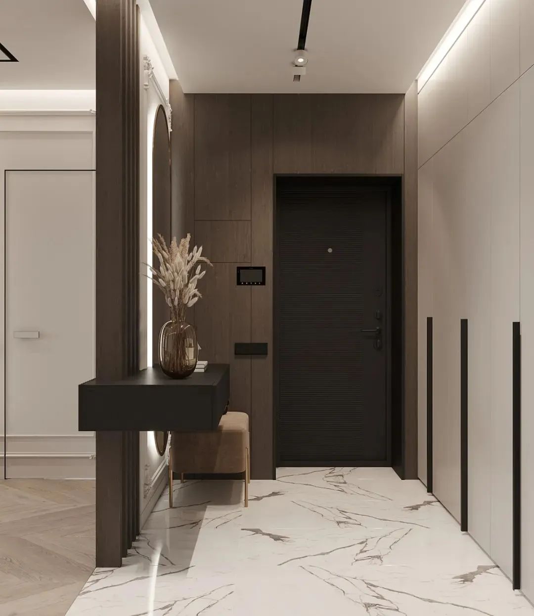公寓的總面積為127㎡,是一個年輕家庭的居所。設計師選用白色與木色作為空間的主色調,利用多種材質塑造空間,豐富了空間的細節,打造出有層次的現代空間,展現出設計師不俗的水平。