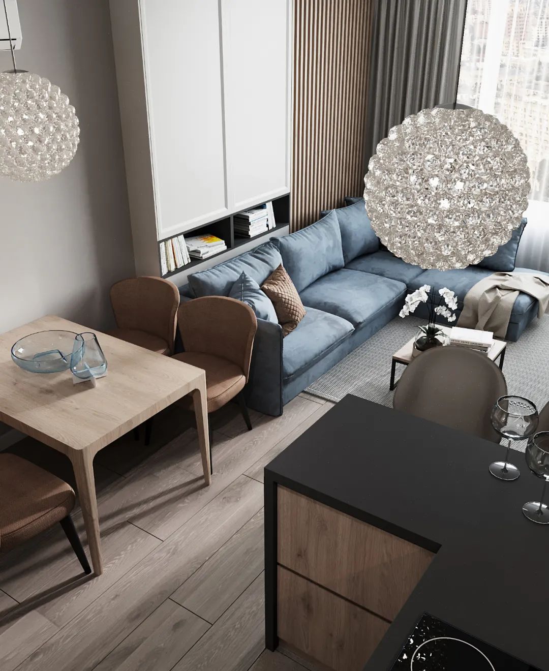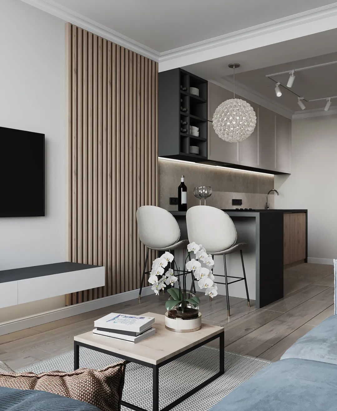 整個公寓的內飾部分,燈具采用了意大利的Azzardo、烏克蘭的Anzazo、比利時的Lucide,更能增添一份時尚感。